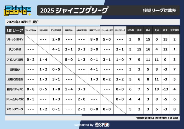 後期|1部リーグ:【公式】2025シャイニングリーグU-12