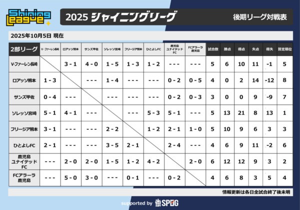 後期|2部リーグ:【公式】2025シャイニングリーグU-12