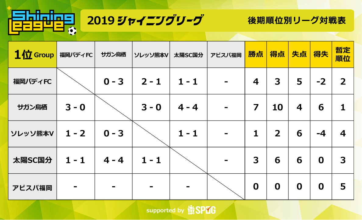 1位グループ:2019 後期順位別L【公式】シャイニングリーグU-12