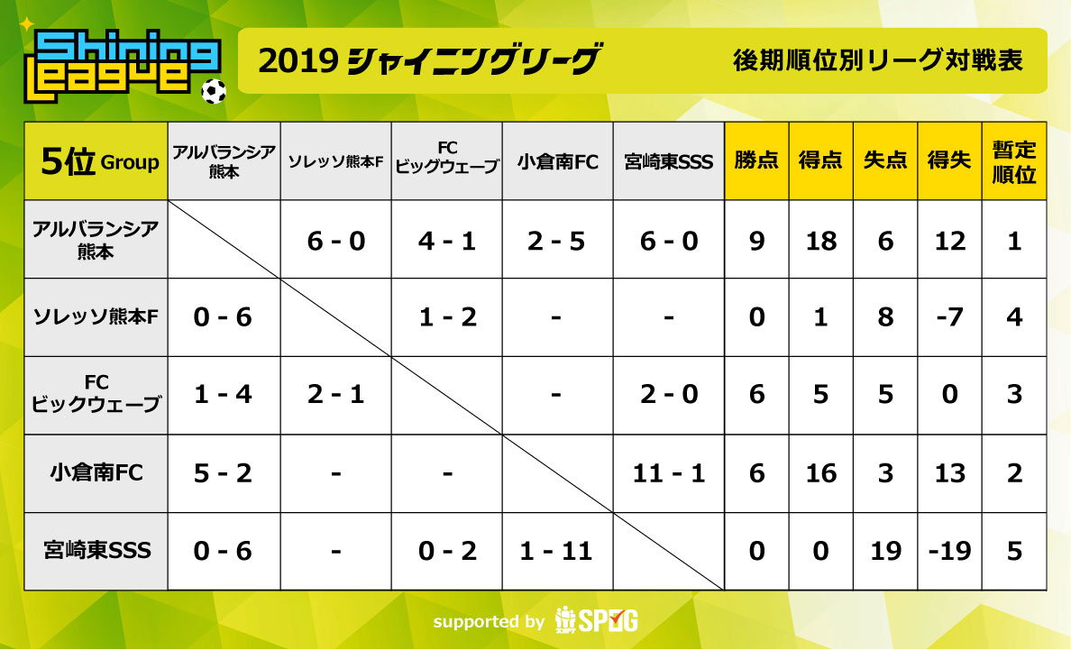 5位グループ:2019 後期順位別L【公式】シャイニングリーグU-12