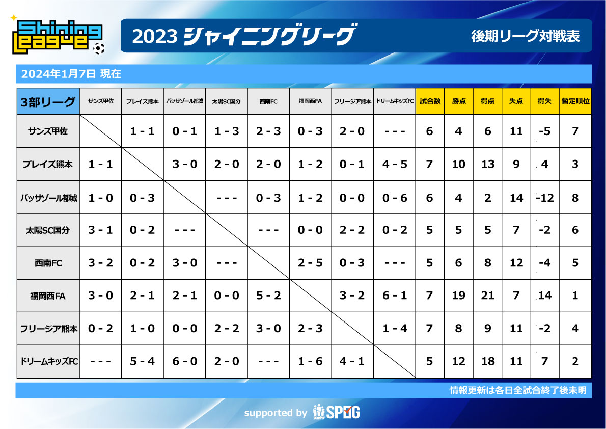 3rd_20240107_1106 2024.01.07 Post Share Hatena LINE RSS feedly Pin it note 関連記事一覧 大会要項・競技規則:【公式】2022シャイニングリーグU-12 2022.05.15 Group E:2019前期順位パート決定L:【公式】シャイニ... 2019.07.07 後期|4部リーグ:【公式】2025シャイニングリーグU-12 2026.03.07 後期:【公式】2024シャイニングリーグU-12 2025.01.11 2位グループ:2019 後期順位別L【公式】シャイニングリ... 2019.09.23 2021 後期順位別L:【公式】シャイニングリーグU-12 2021.10.14 Group B:前期順位パート決定L:【公式】2022シャイニ... 2022.07.03 後期リーグ別出場チーム:【公式】2023シャイニングリ... 2023.08.19